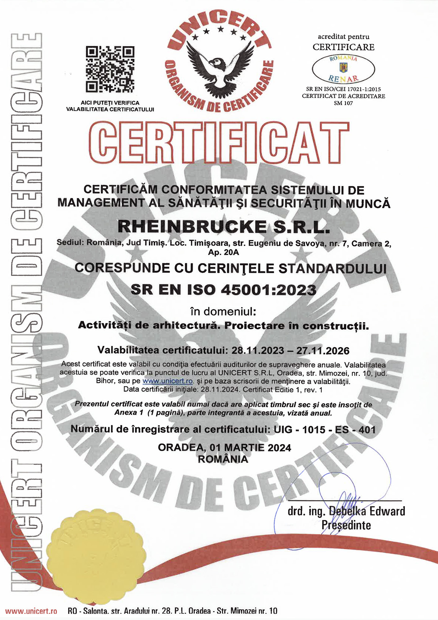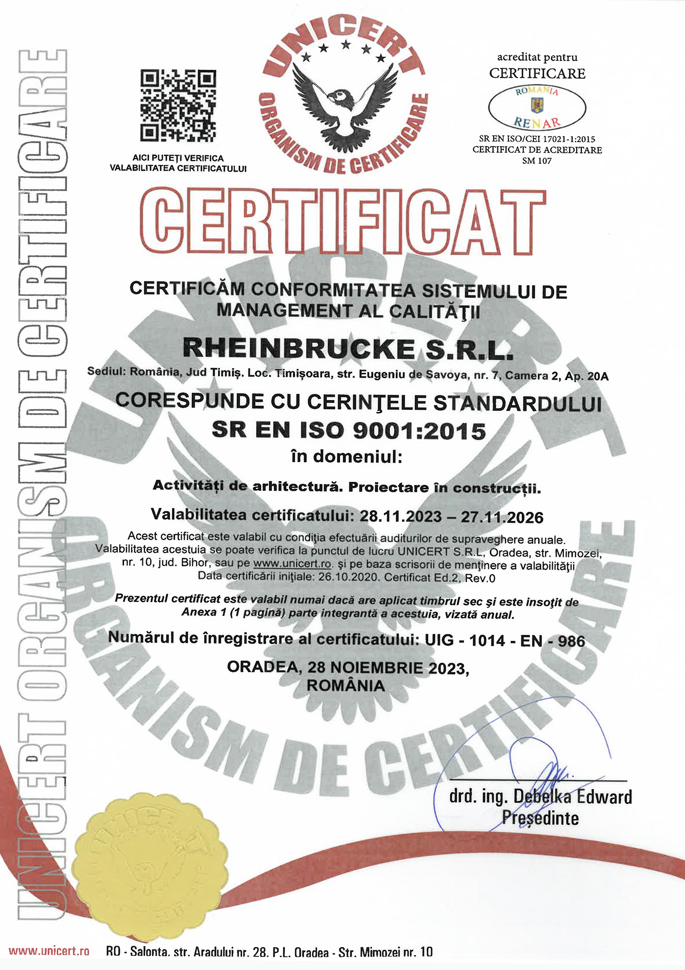Fondată în 1993, Rheinbrucke este o companie de arhitectură, urbanism și construcții din Timișoara care se dedică promovării valorilor inovaționale ale urbanismului și arhitecturii românești. Cu o experiență robustă și un portofoliu în continuă expansiune, Rheinbrucke și-a consolidat poziția pe piața locală, extinzându-și operațiunile dincolo de granițele României începând cu anul 2010.